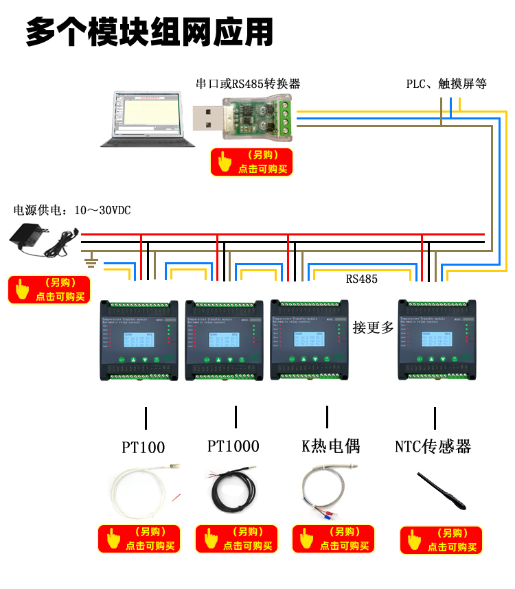 6/12路PT100温度变送器K热电偶模块6路继电器输出温控报警SEC3013